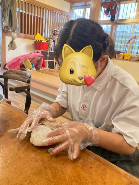今日の活動は、美味しいを共有できるか、手指を上手に使えるかの元、おにぎり作りをしました。