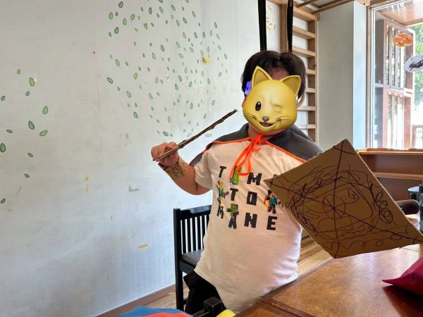 仮装準備では自分の家から持ってきている子や、スタッフが持ってきた小道具を使う子といます。
