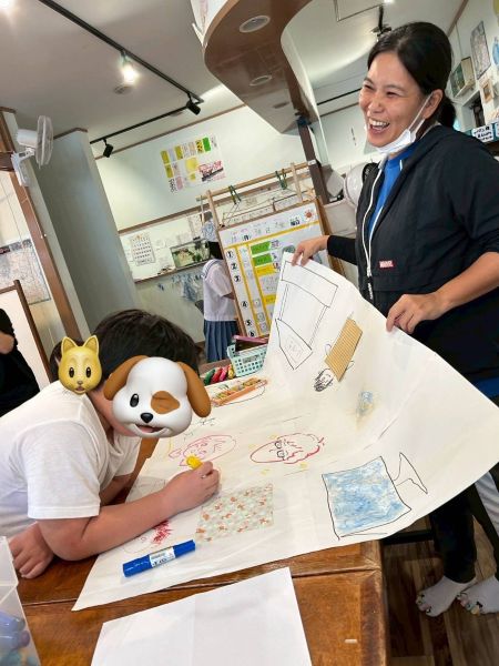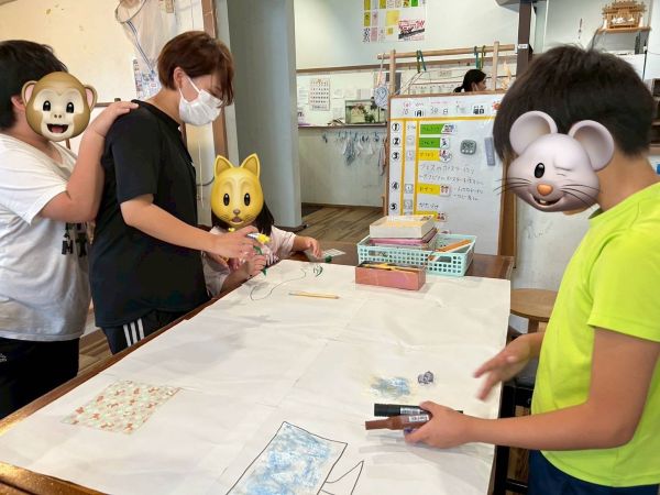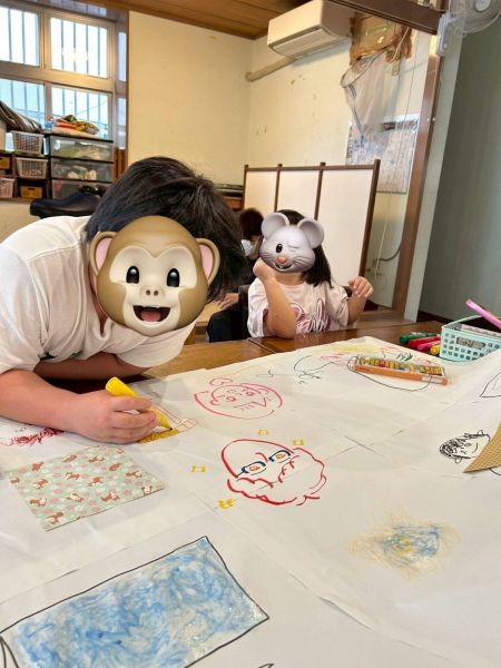 はじめは、「やらない?」に対して「いいよ」と否定的だった子も「自分(スタッフ)が描くからお祭りのイメージ教えて頂戴」