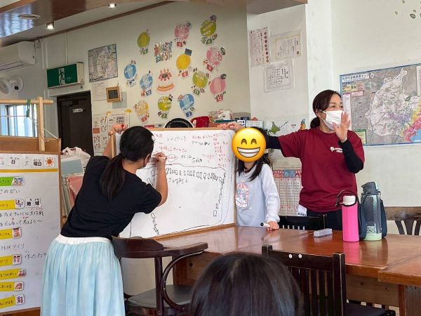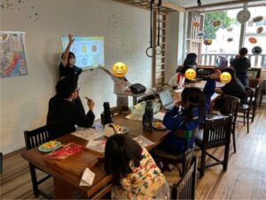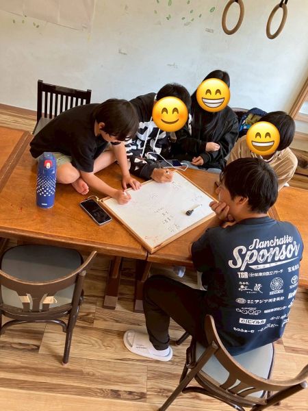 2グループに分かれてボードに案を書いてそのあと発表します。