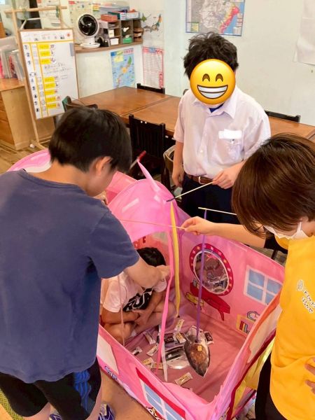 テントの中に自ら入って、釣れるお菓子や魚の難易度を上げる子もいました。
