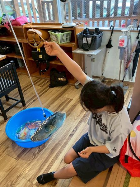今日は室内で手作りの魚釣り活動をしました。