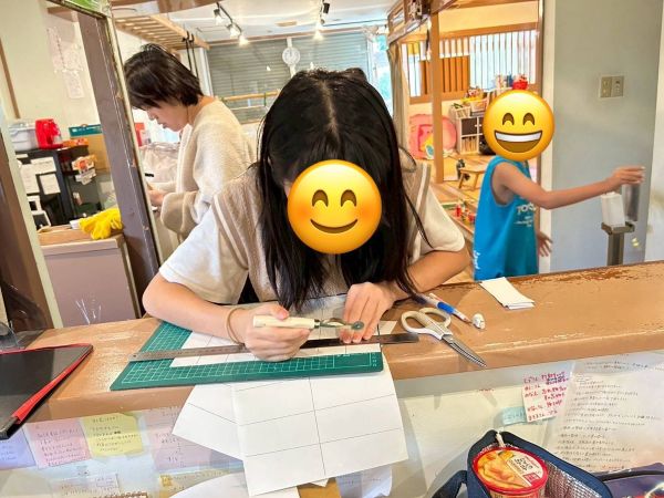 チケット作る子は、チケットがちぎれる様に、カッターなどで点線を引いて工夫が光ります。