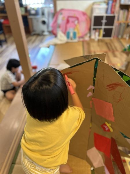 早めの来所の子がいました。活動道具の準備をしているスタッフとおしゃべりしながら過ごしています。