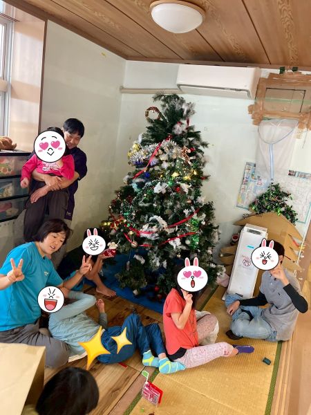 年上の子とスタッフが組み立てたツリーに皆で装飾します。