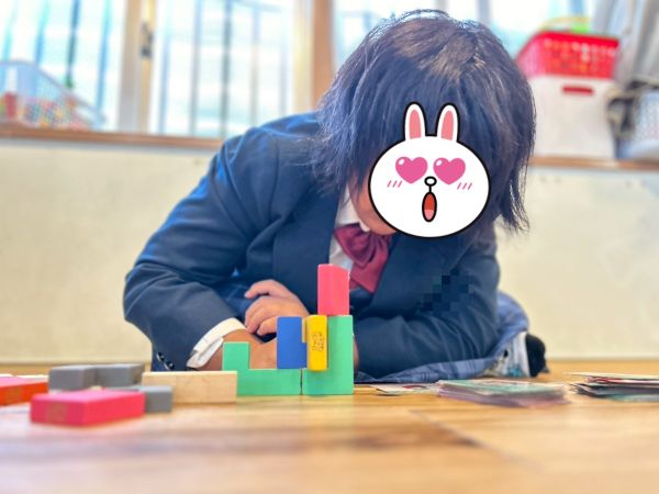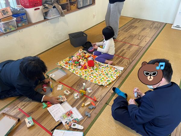 今日がはるかぜに入って二回目の女の子がいました。スタッフが誘って絵カードを見てその通りにブロックを並べる遊びをするとスタッフよりも早く組み立てます。見えてない部分も想像して組み立てる事ができています。塗り絵に誘うと筆圧もあり、カラフルに塗っていました。