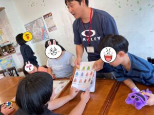 また、沢山の折り紙の見本の中から猫の折り方を選んでスタッフと一緒に折る子は出来ると笑顔が溢れます。
