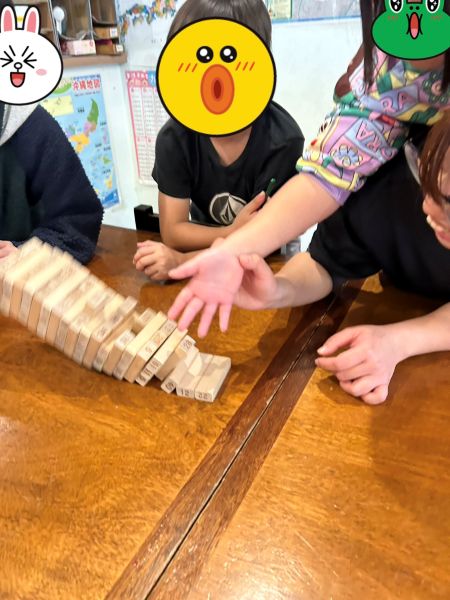 普段にはない珍しい組み合わせでジェンガが始まって楽しむことができました。