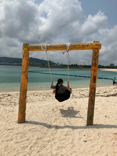 海に着くと、荷物を一か所にまとめます。一人が「ブランコ行きたい!」と言ったので皆でそこに向かいます。