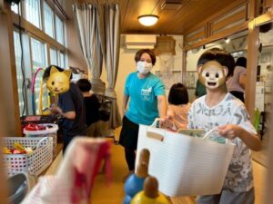 今日の活動は、お菓子をいくつか入れた袋を室内に前もってスタッフが隠して子ども達が探すというのをやりました。 みんなで協力して五つのお菓子の袋を探します。探したお菓子は一人一つ当たる様に分けます。 スタートと言われる前から […]