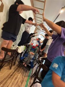 今日は自主活動でしたが、何の遊びをしようか決まっていませんでした。 すると、スタッフが卓球のラケットを持ってやってきました。 子どもが気づいて「やりたい!」となり、「じゃああっちでやろう!」と提案があり畳間に特設ステージ […]