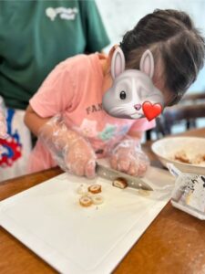 今日は、ちくわを使ってチップス作りをしました。 ちくわをスライスして輪切になったものをレンジでチンして作り上げます。 はじめは興味なかった子もキッチンバサミでカットしているのを見せると「やってみる」となりました。 包丁を […]