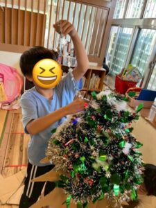 今日は、はるかぜに最近入ってきたクリスマスツリーを皆で組み立てました☆ 年上の子とスタッフが組み立てたツリーに皆で装飾します。 電飾の電池を交換して顔周りに飾り付けて楽しんでいる子。 始めは、様子を伺っていて、周りが迷っ […]