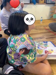 今日は、読み聞かせをしました。 季節に合わせてクリスマスの話と1月の十二支の話をしました。 「そうなんだぁ」と相槌を打つ子、絵本の読み聞かせの後に絵本に顔を近づけて興味津々な子。 話の途中に、「サンタはフィンランド」「夏 […]